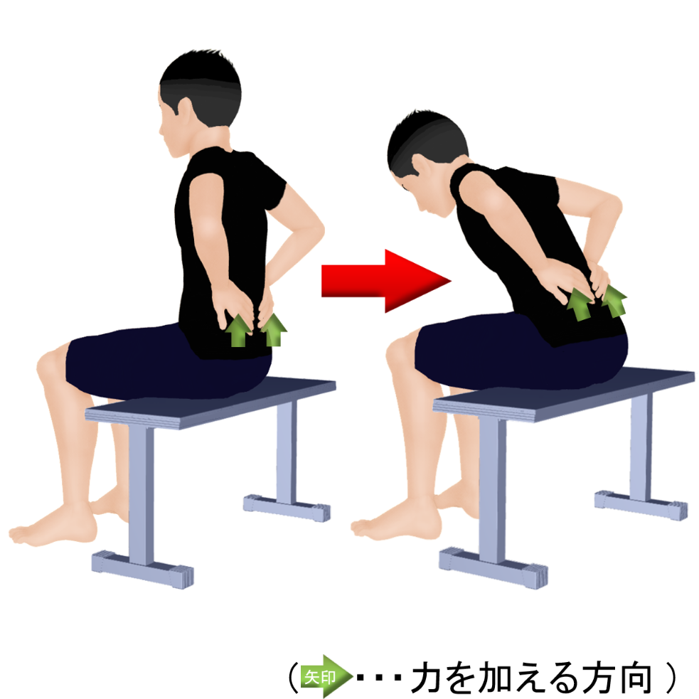 - 腰背部リリース+体幹屈曲 -