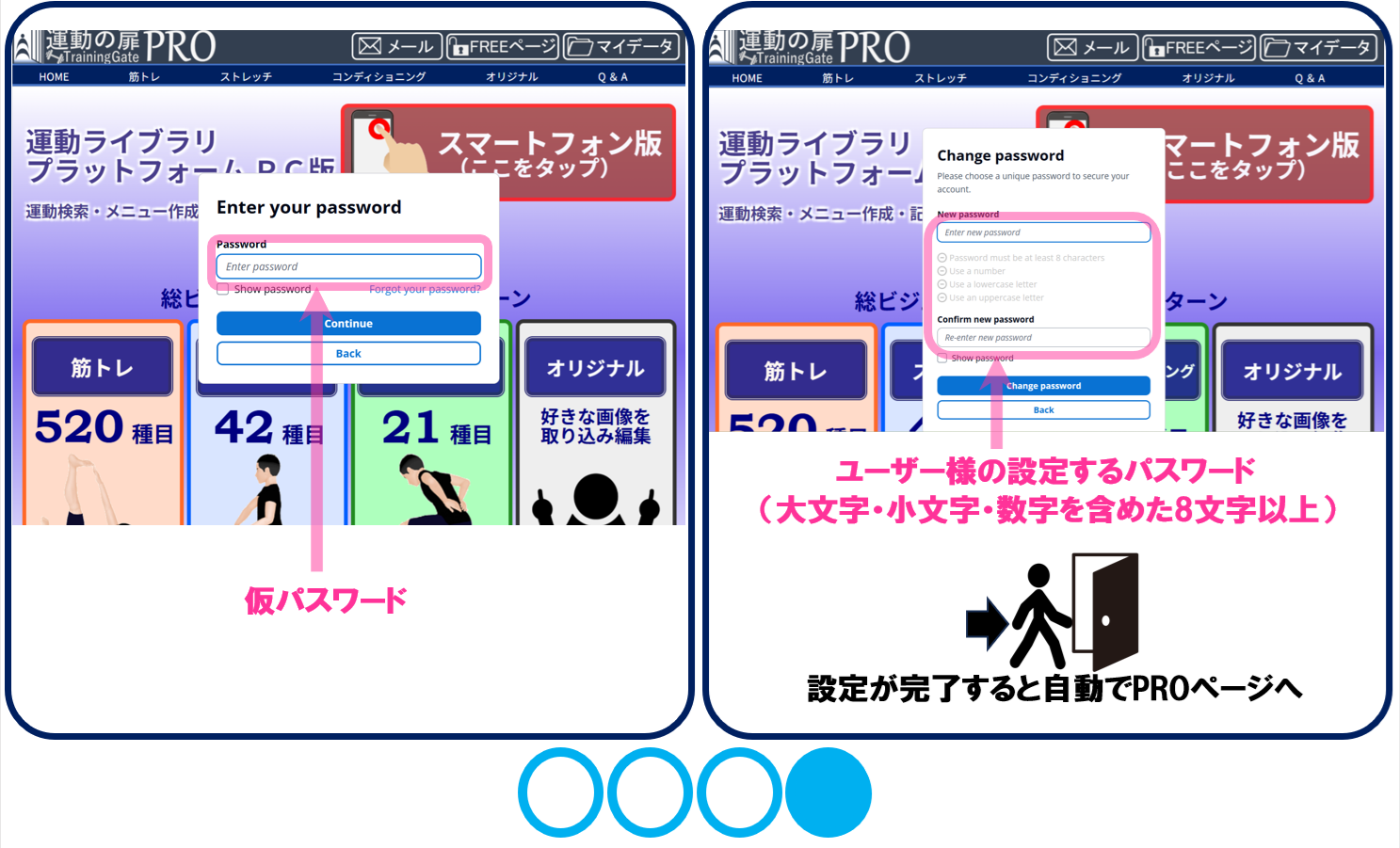 仮パスワードが認証されると、パスワード設定画面が表示されます。