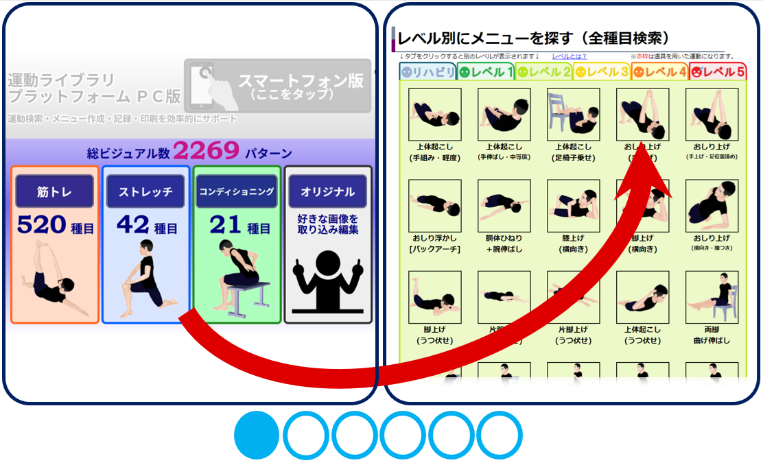 運動検索・メニュー作成・記録・印刷を効率的にサポート