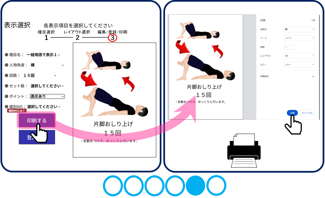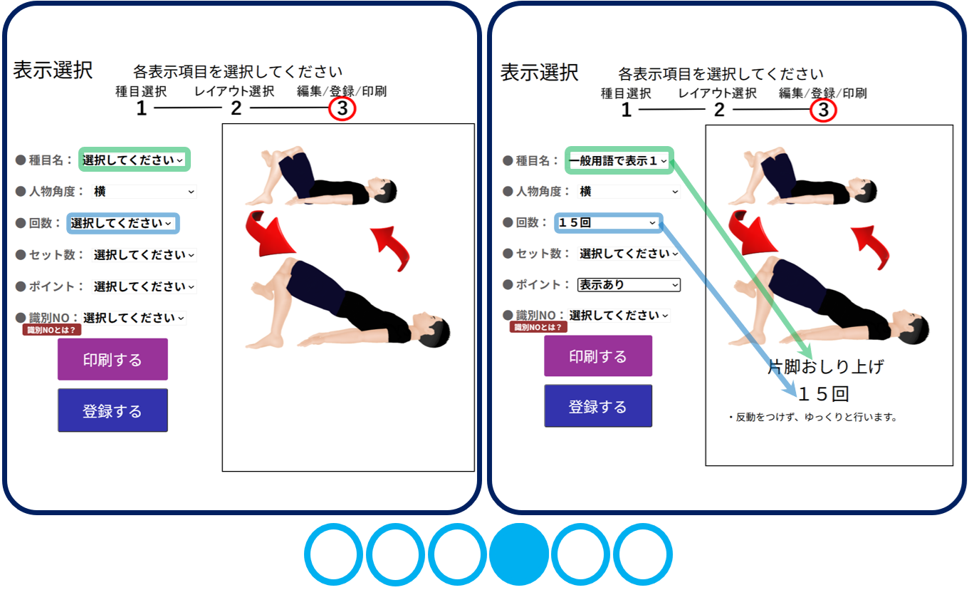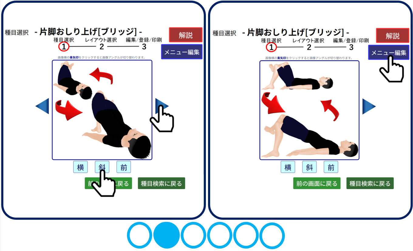 運動検索~メニュー編集~登録・プリントまで最短1分で行えます。